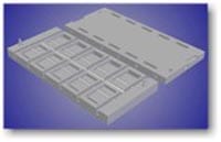 Large triangular pry slots are located at the corners, opposite the cam-action hinges. These further facilitate mold opening and reduce the occurrence of cavity damage from improperly positioned tools.